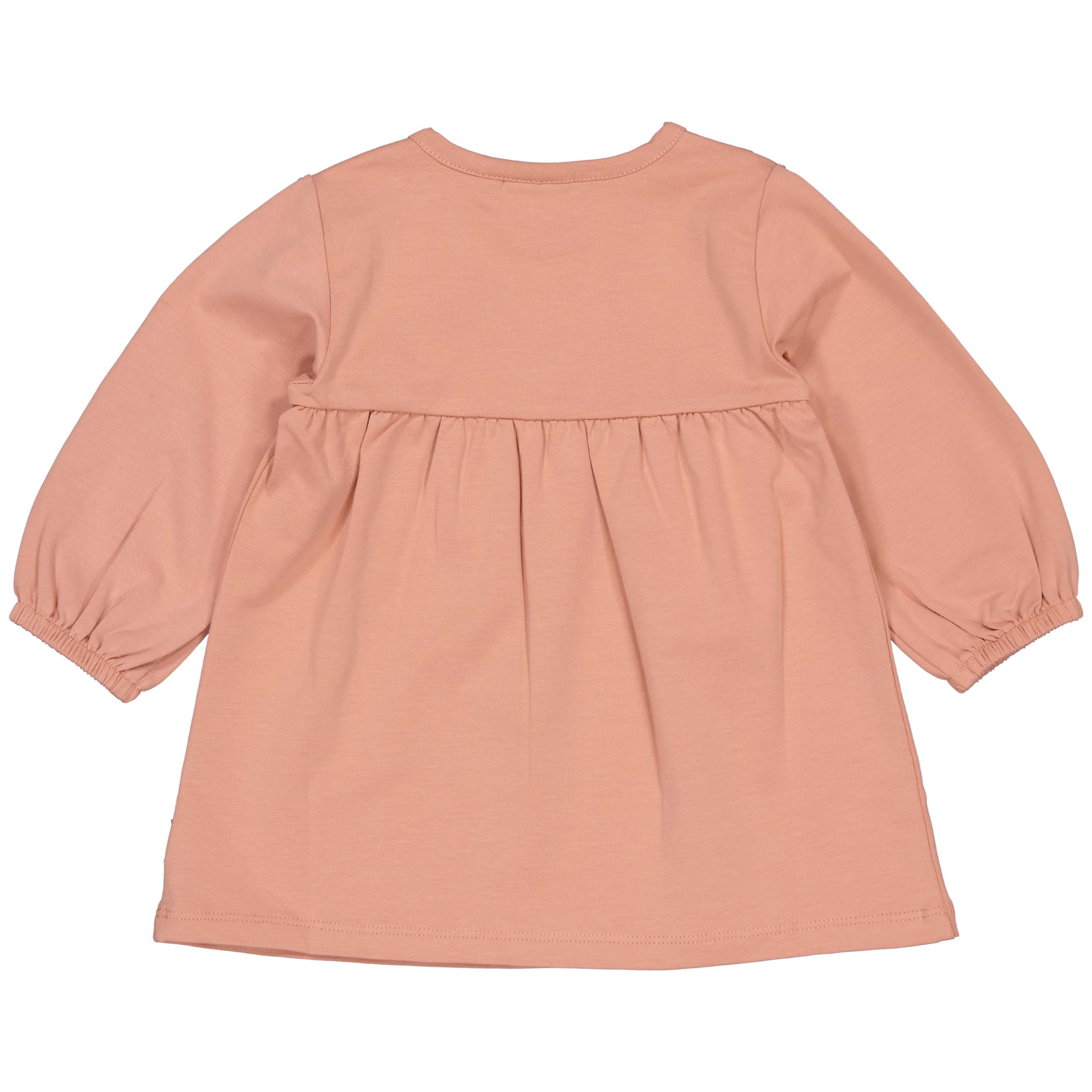 Dit jurkje is gemaakt van 95% organisch katoen en 5% elastan. Organisch katoen staat bekend om haar slijtvastheid en comfortabele pasvorm. Het is een heerlijk zachte stof, zodat je kleintje vrij kan bewegen terwijl zij de wereld ontdekt.